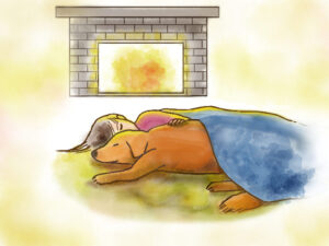 床暖の上に寝ている時は、そのひざ掛けをかけてやると顔を上げて嬉しそうに「ありがとう」という顔をしてくれてました。