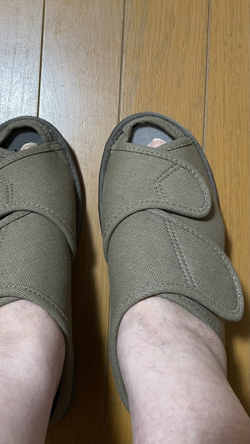室内履きも高齢者の方や足の悪い方が履く用のマジックテープで調整出来る物ですが、これもまた歩きやすい。